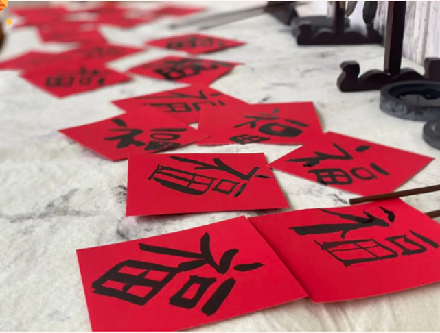 興高采烈迎新年,鞭炮隆隆寫對聯(lián),