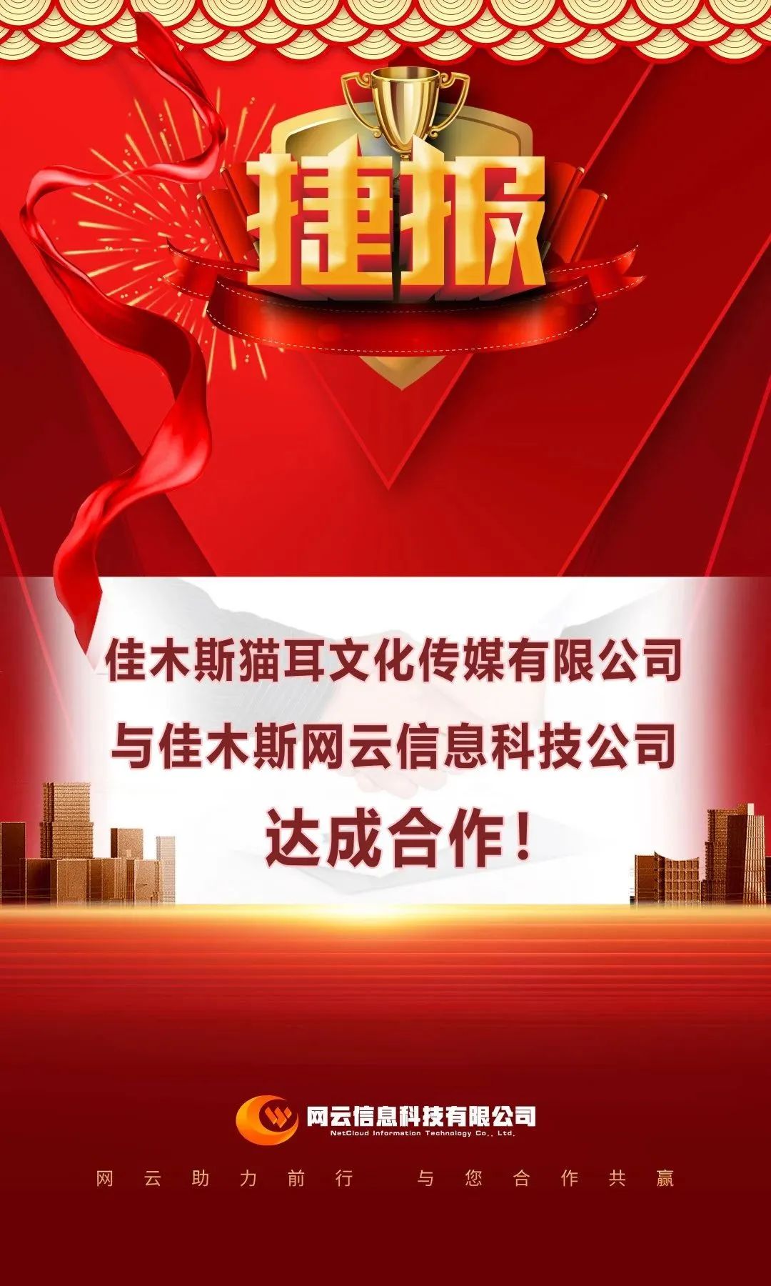 恭喜|佳木斯貓耳文化傳媒有限公司與網(wǎng)云信息科技公司達(dá)成合作!